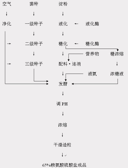 賴氨酸硫酸鹽生產(chǎn)方法和工藝流程: