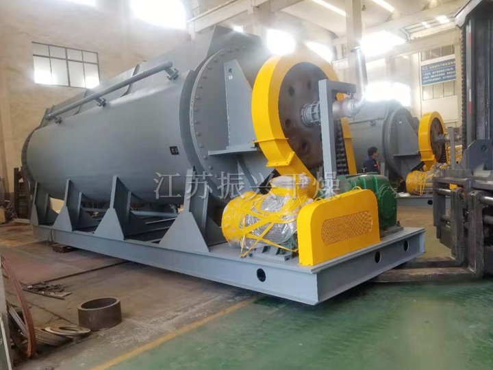 圓盤片傳熱面具有自清潔功能。物料顆粒與圓盤面的相對(duì)運(yùn)動(dòng)產(chǎn)生洗刷作用,能夠洗刷掉圓盤面上附著物料,使運(yùn)轉(zhuǎn)中一直保持著清潔的傳熱面。振干空心圓盤污泥干燥機(jī)的殼體為O型,殼體內(nèi)一般安排一根空心攪拌軸。殼體有密封端蓋與上蓋,防止物料粉塵外泄及收集物料溶劑蒸汽。出料口處設(shè)置一擋扳,保證料位高度,使傳熱面被物料覆蓋而充分發(fā)揮作用。傳熱介質(zhì)通過旋轉(zhuǎn)接頭,流經(jīng)殼體夾套及空心攪拌軸,空心攪拌軸依據(jù)熱介質(zhì)的類型而具有不同的內(nèi)部結(jié)構(gòu),以保證較佳的傳熱效果。