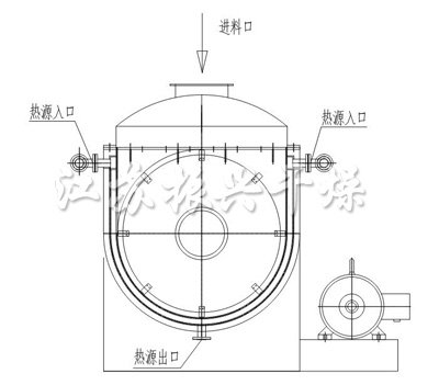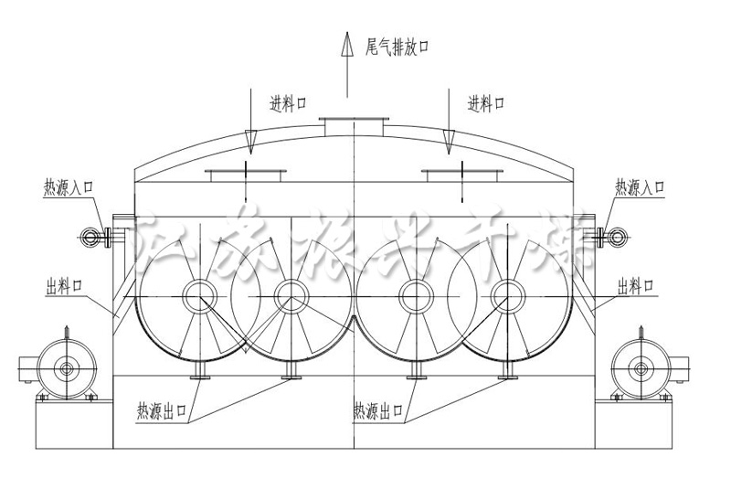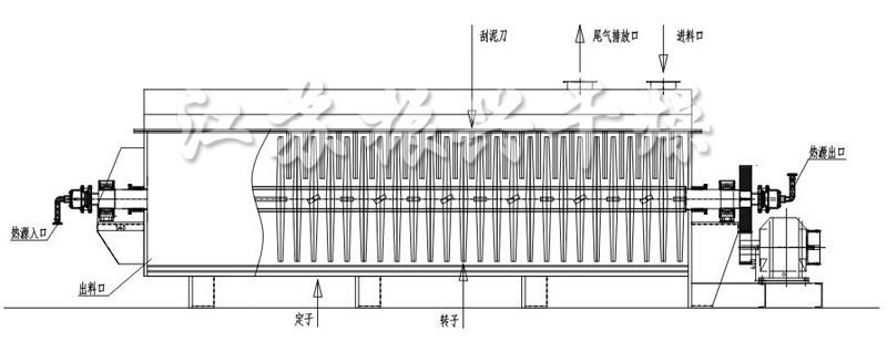 使?jié)裎锪显谌~片的攪動(dòng)下,與加熱載體的熱表面充分接觸,從而達(dá)到干燥目的,結(jié)構(gòu)形式一般為臥式。污泥烘干機(jī)分為熱風(fēng)式和傳導(dǎo)式。熱風(fēng)形式即通過熱載體(如熱空氣)直接與被干燥的 物料接觸并進(jìn)行干燥,傳導(dǎo)形式即熱載體并不與被干燥的物料直接接觸,而是熱表面與物料傳導(dǎo)接觸并進(jìn)行干燥。污泥覆蓋葉片并與葉面的相對運(yùn)動(dòng) 產(chǎn)生洗刷作用。雙滾筒刮板干燥機(jī)是一種內(nèi)加熱傳導(dǎo)型轉(zhuǎn)動(dòng)連續(xù)干燥設(shè)備。旋轉(zhuǎn)的滾筒通過其下部料槽,黏附著一厚度的料膜,熱量通過管道輸送至滾筒內(nèi)壁,傳導(dǎo)到滾筒外壁,…