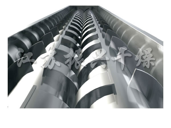 空心軸上密集排列著楔型中空漿葉,熱介質(zhì)經(jīng)空心軸流經(jīng)漿葉。單位有效容積內(nèi)傳熱面積很大,熱介質(zhì)溫度從-40℃到320℃,可以是水蒸汽,也可以是液體型:如熱水、導熱油等。間接傳導加熱,沒有攜帶空氣帶走熱量,熱量均用來加熱物料。熱量損失僅為通過器體保溫層向環(huán)境的散熱。楔型漿葉傳熱面具有自清潔功能。物料顆粒與楔型面的相對運動產(chǎn)生洗刷作用,能夠洗刷掉楔型面上附著物料,使運轉(zhuǎn)中一直保持著清潔的傳熱面。漿葉干燥機的殼體為Ω型,殼體內(nèi)一般安排二到四根空心攪拌軸。殼體有密封端蓋與上蓋,防止物料粉塵外泄而充分發(fā)揮作用。